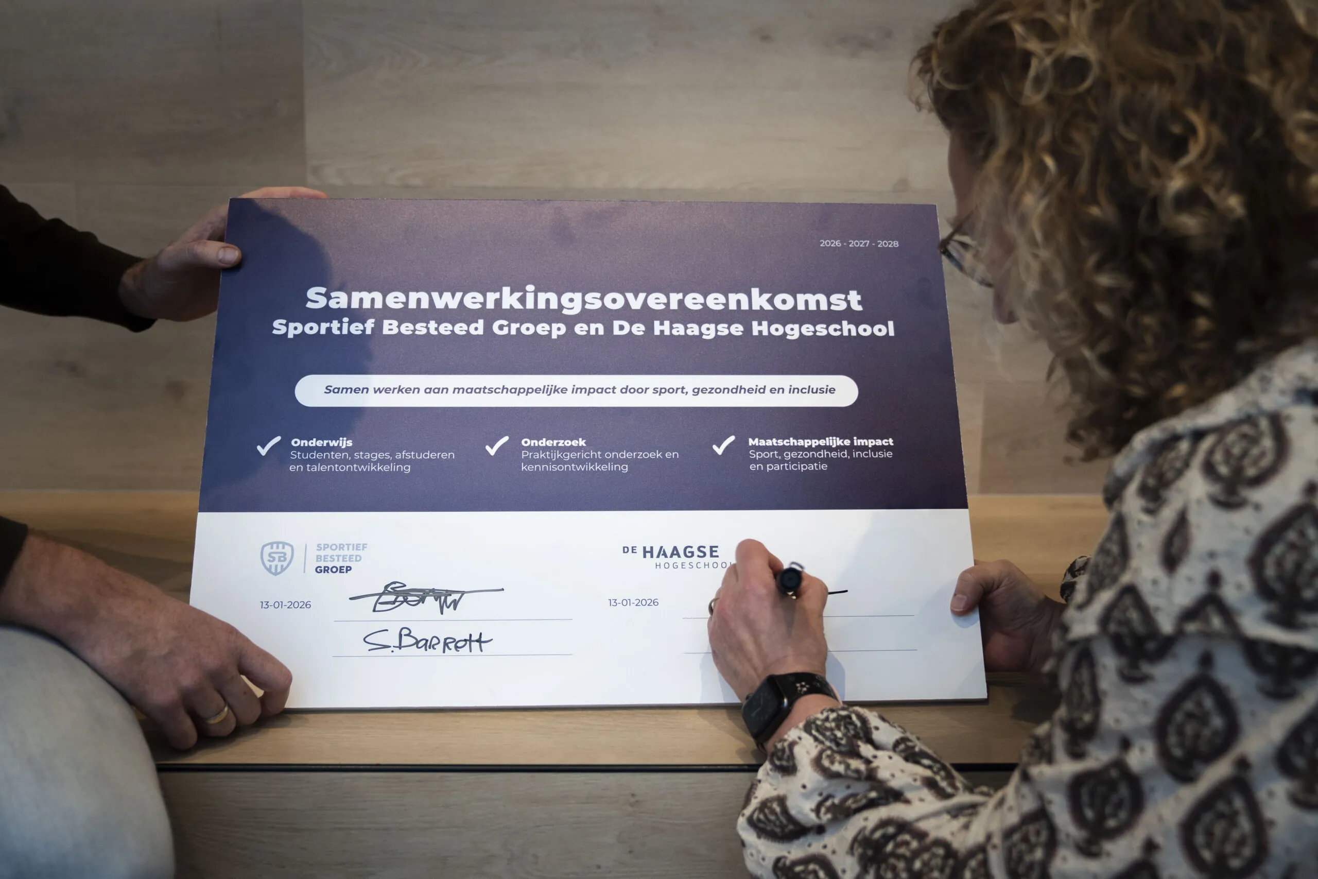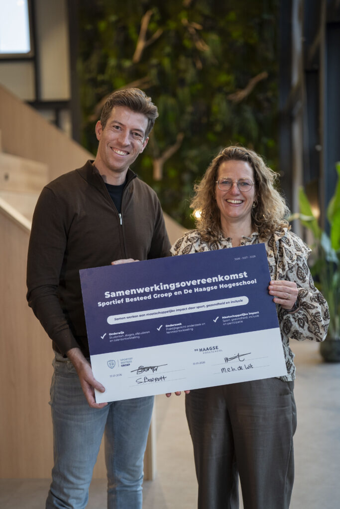 Den Haag, 13 januari 2026 – Sportief Besteed Groep en De Haagse Hogeschool hebben vandaag een meerjarige samenwerkingsovereenkomst ondertekend. Met dit partnerschap versterken zij hun gezamenlijke inzet voor een vitale, gezonde en inclusieve samenleving in Den Haag en de regio. De samenwerking loopt in ieder geval tot en met 2028.